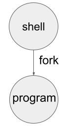 Which results in a single child process running “program”. And, the parent process waits for the completion of the child. This can be sketched as a process tree, like this: